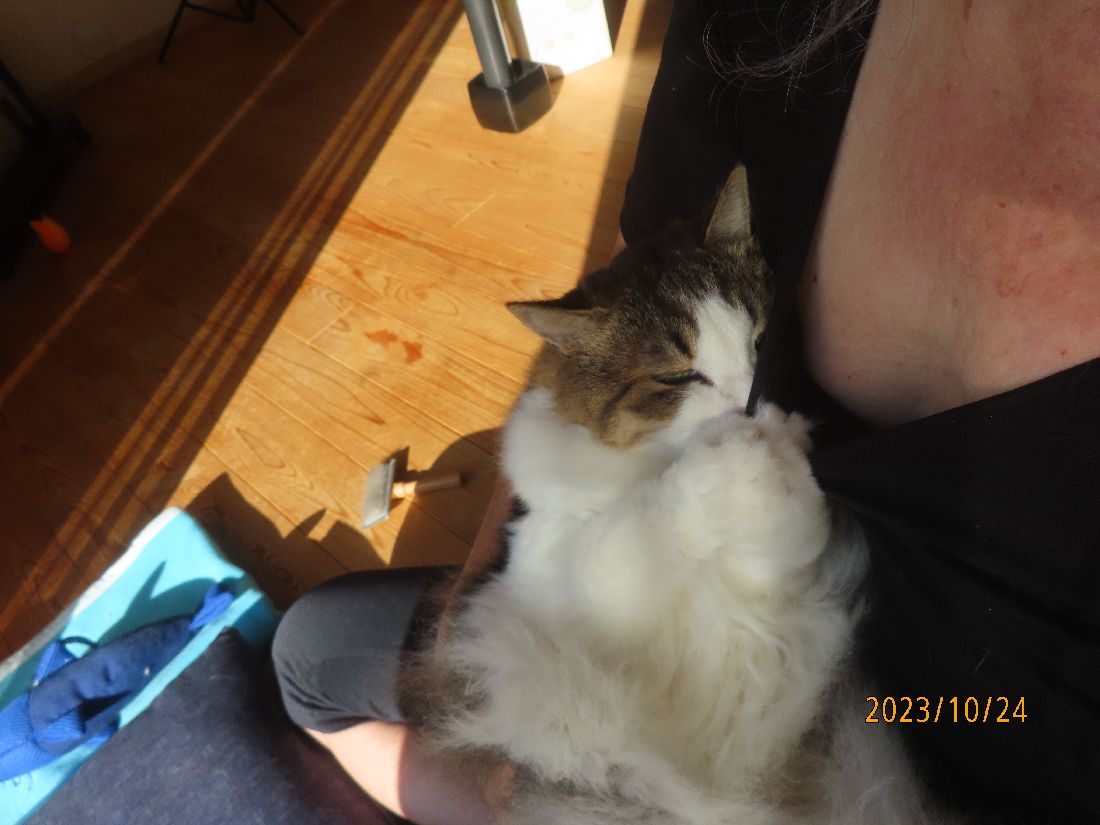 ふうちゃんは布団に潜ったり、ラグに潜ったり、和室の窓辺に佇んだりよく動いています。