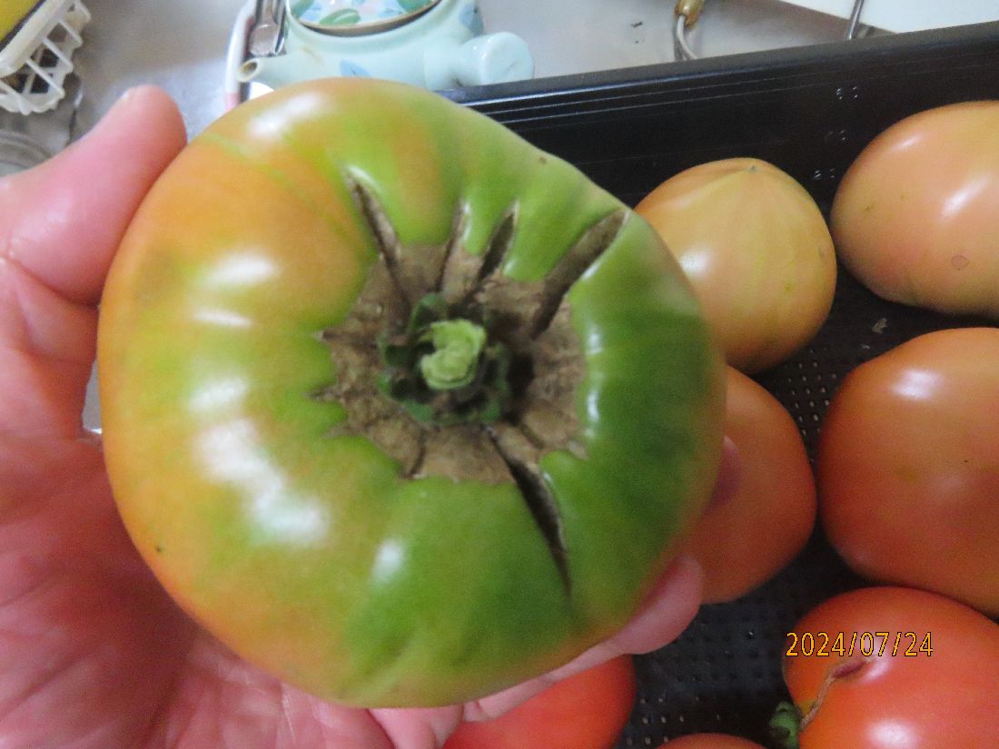 一見きれいな実に見えますが、ヘタ側はひび割れ。