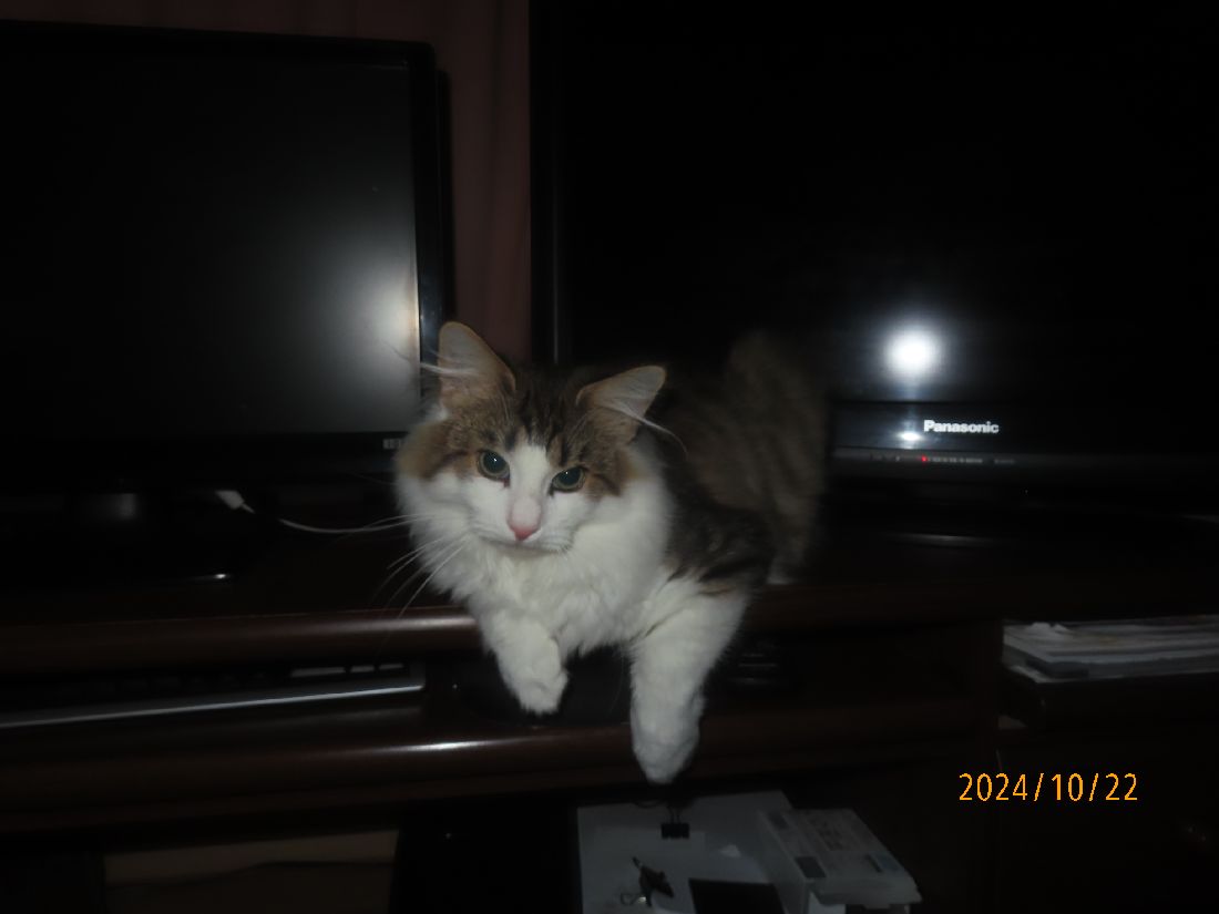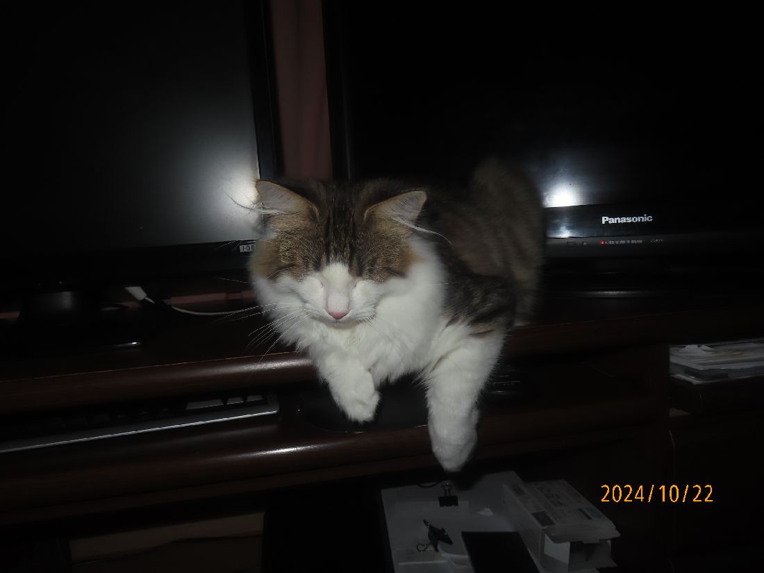 昨夜はテレビの後ろで寝てしまいました。