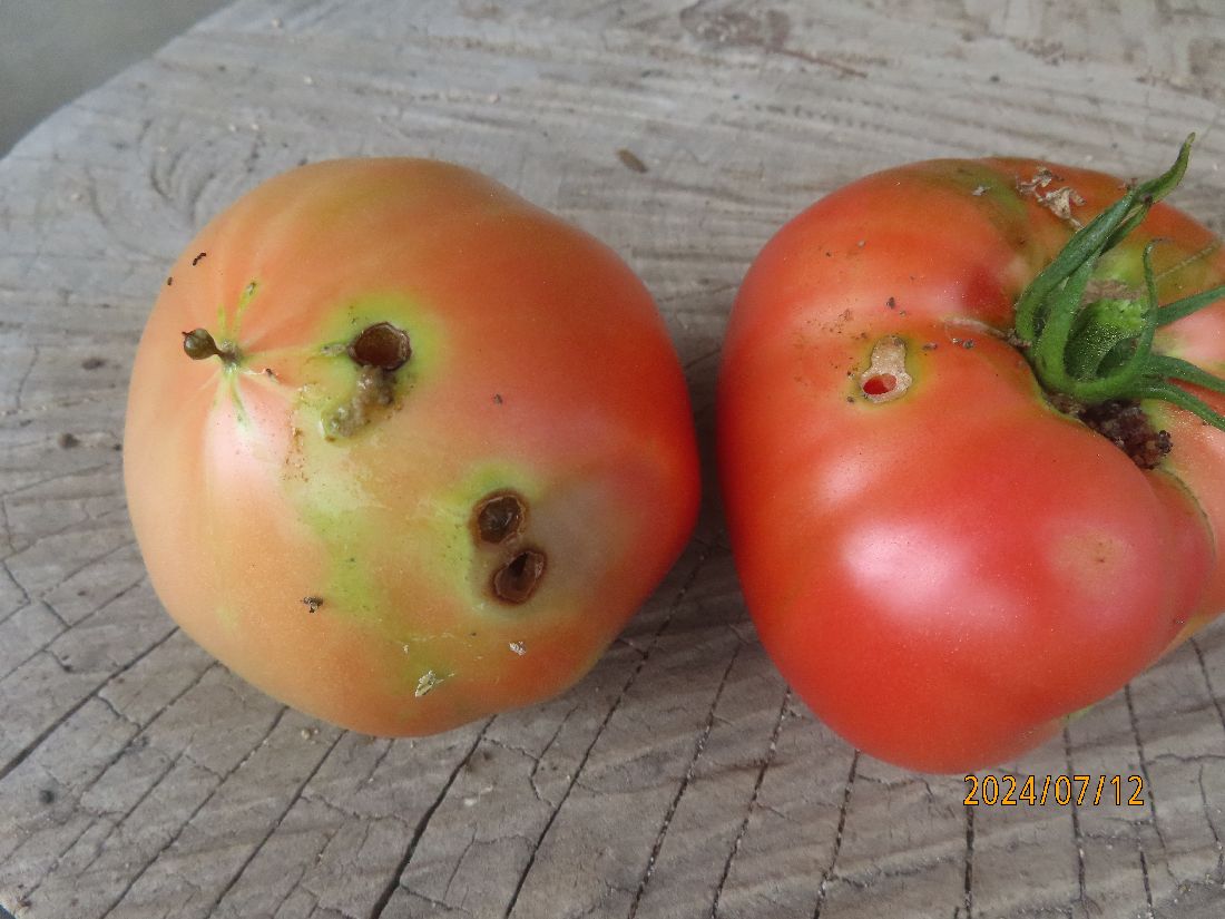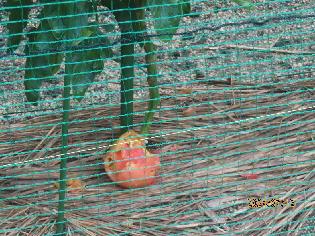 これはひどいです。樹が折れ、実が落ちています。