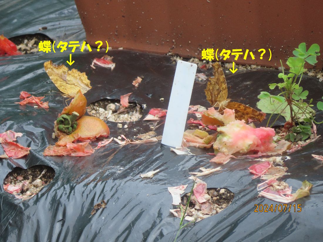 トマトの食べ残しに蝶が来ていました。