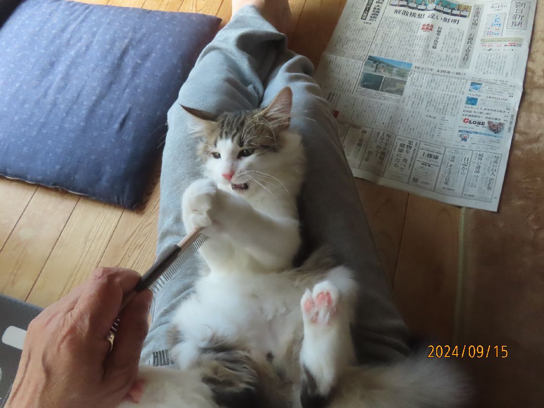 ブラッシングをして新聞を読んでいると、何やらガタゴトしております。