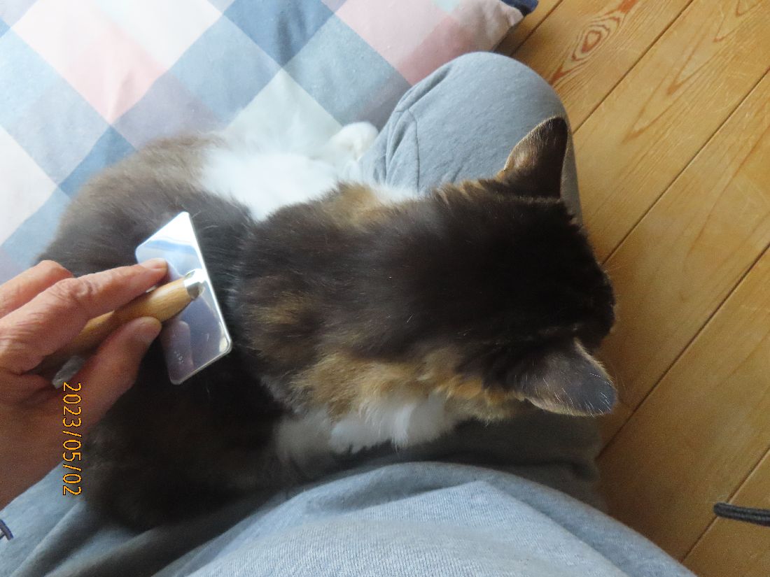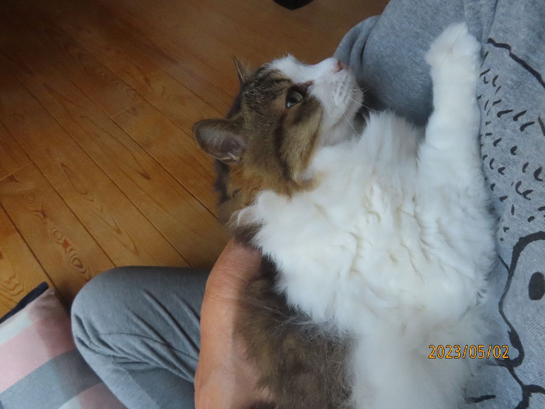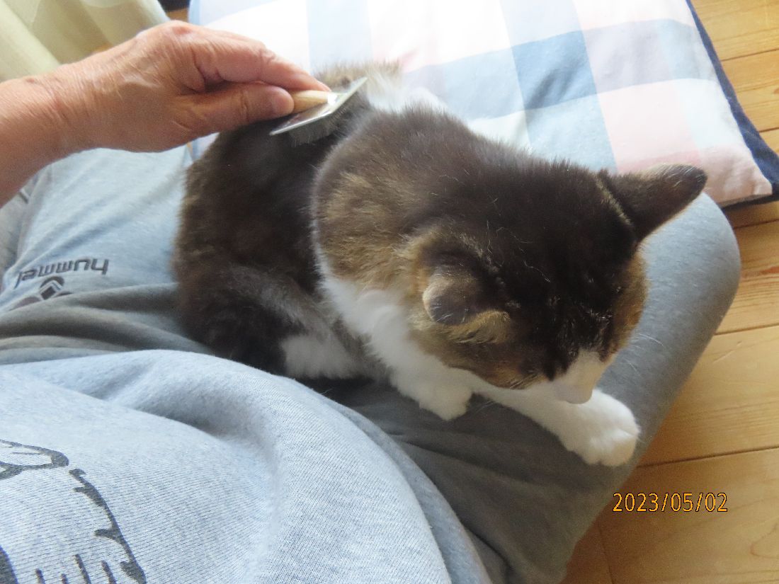 朝、ふうちゃんがまるの頭をクシャクシャにしています。