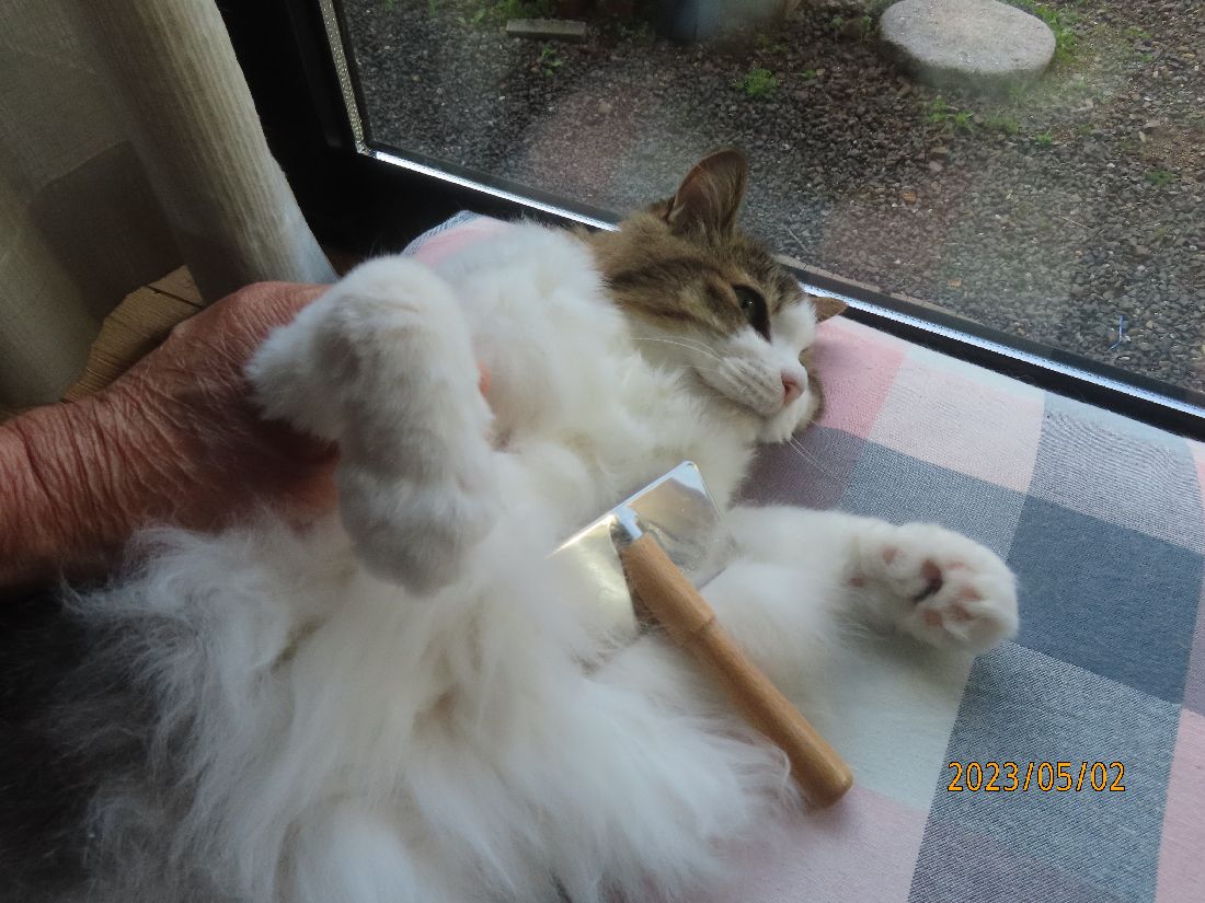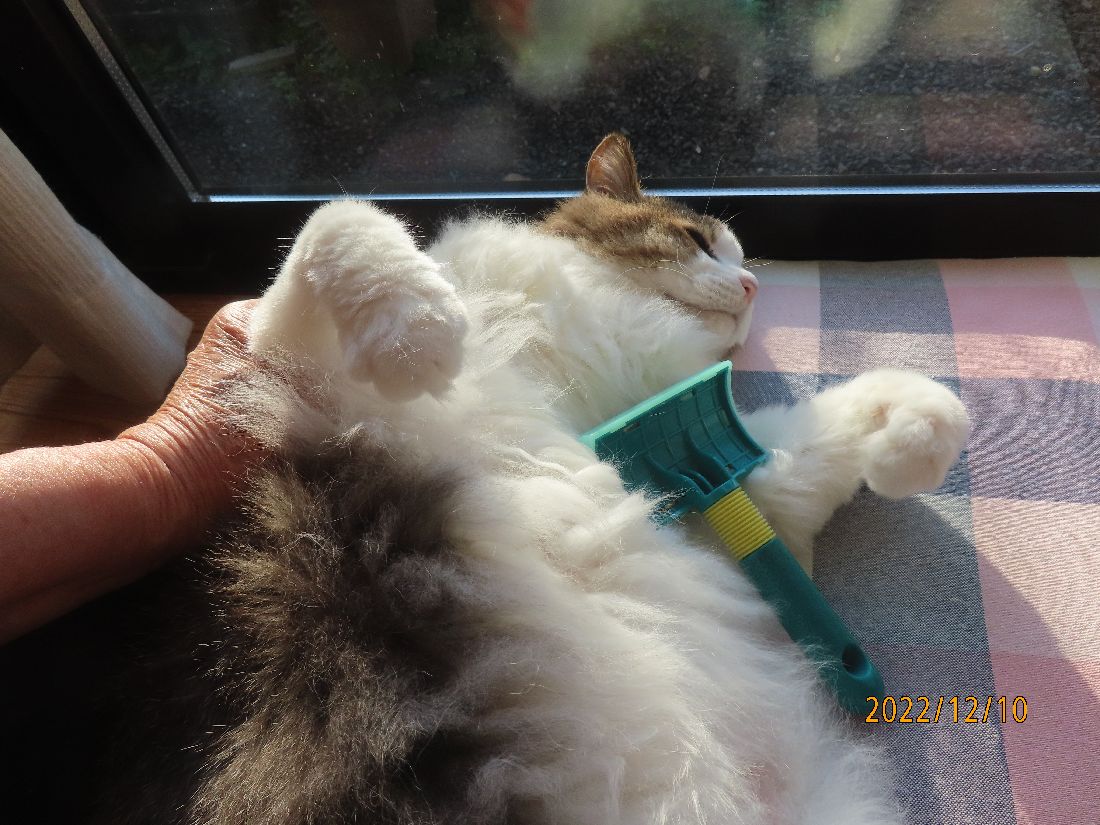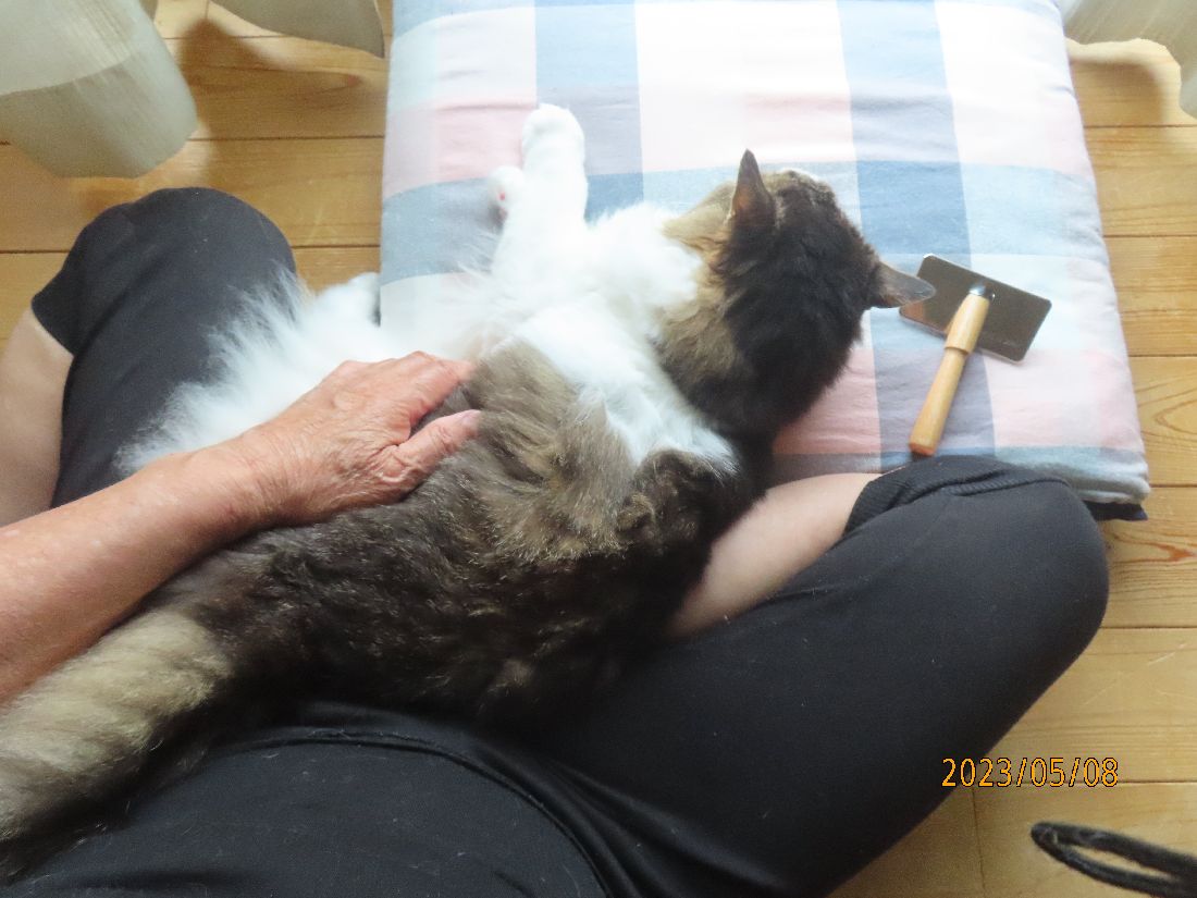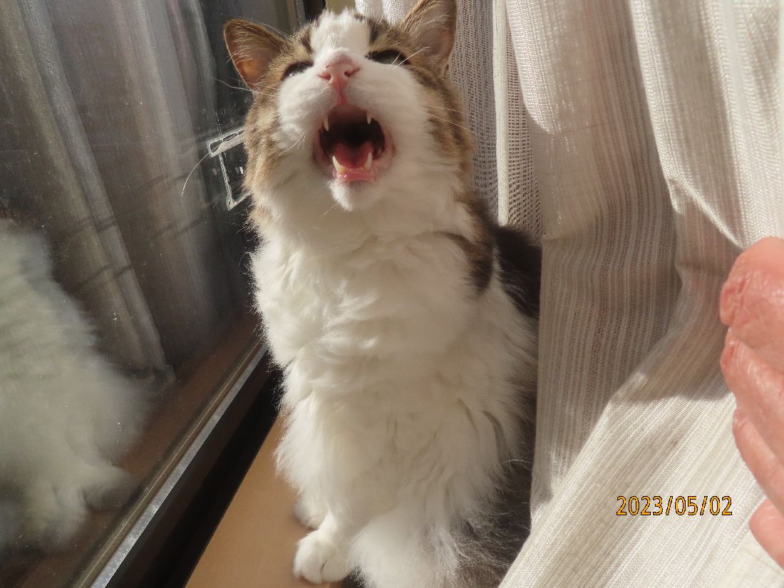 朝、ふうちゃんがまるの頭をクシャクシャにしています。