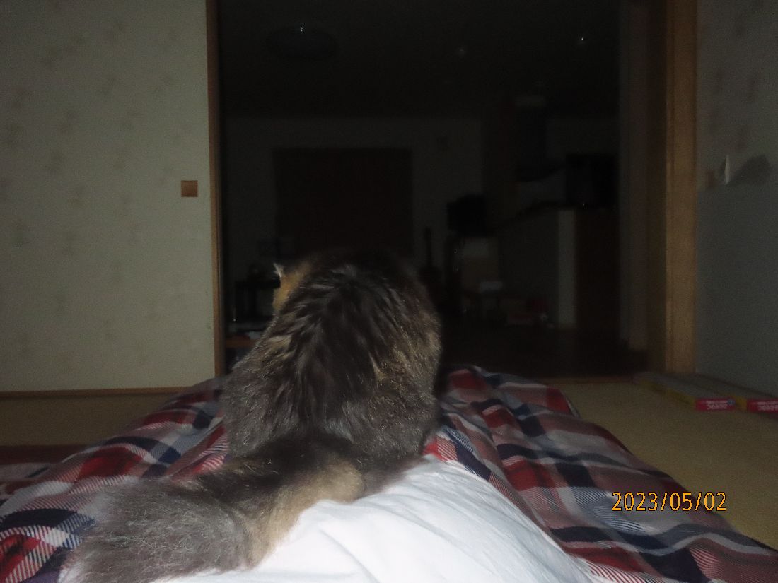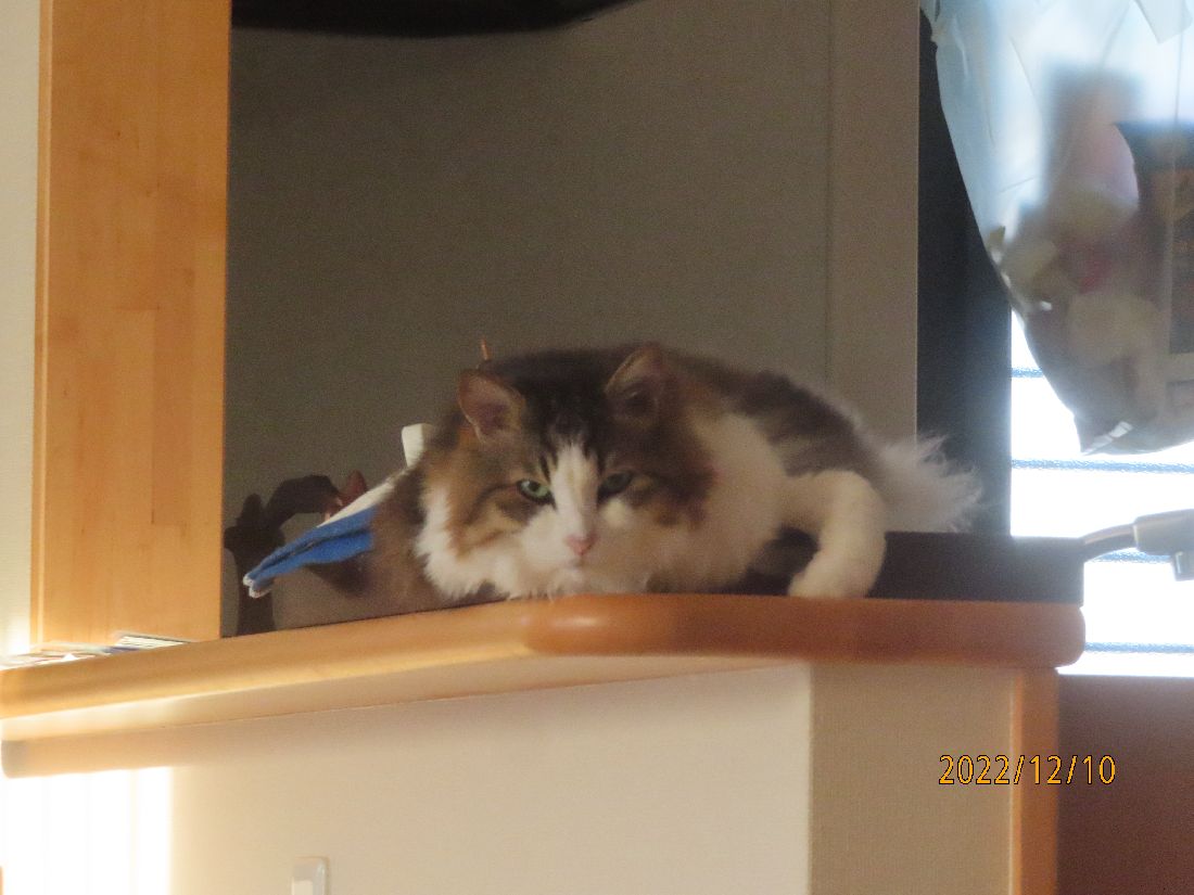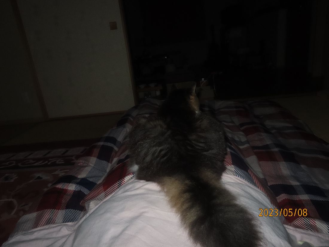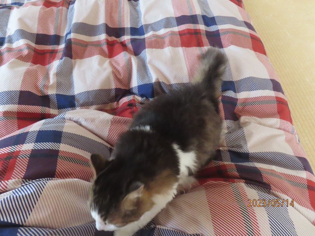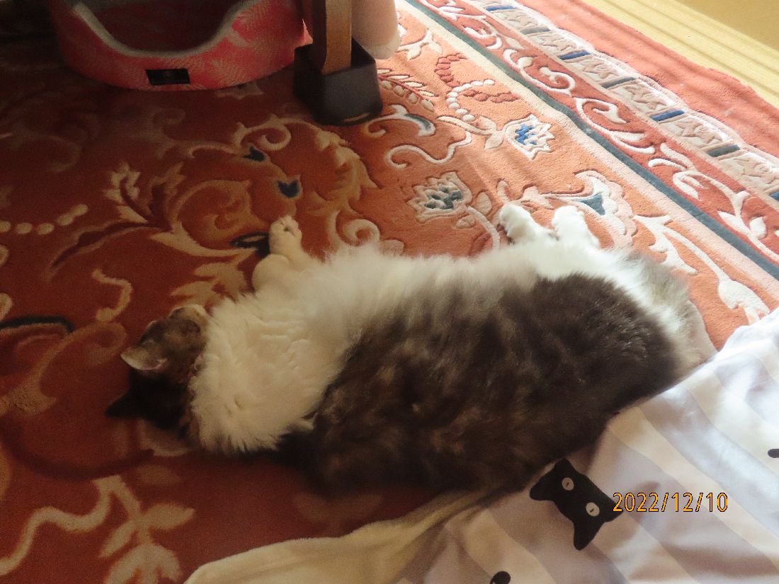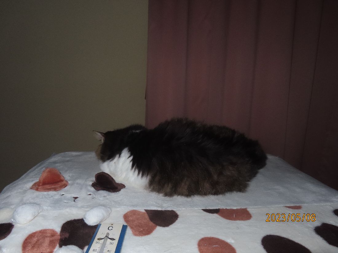 おやすみ挨拶の後、この日もキッチンベッドでおやすみになりました。