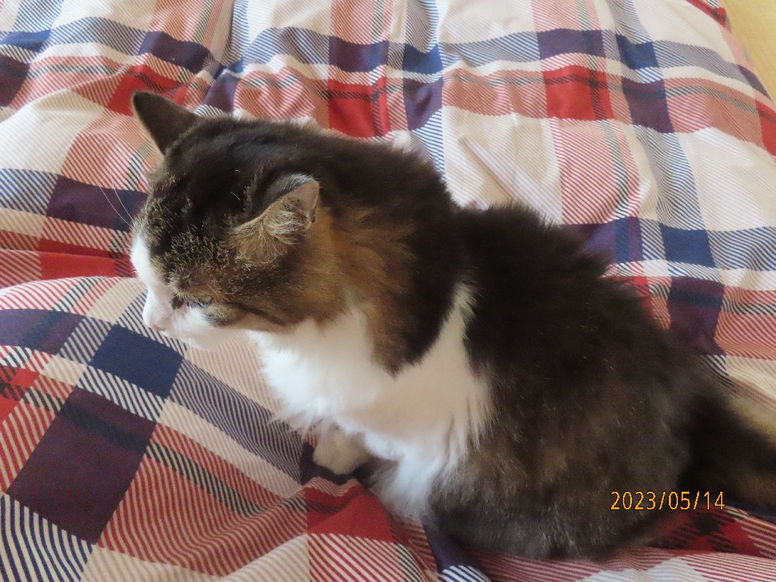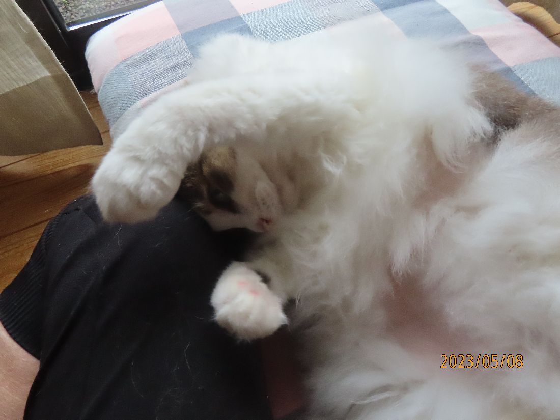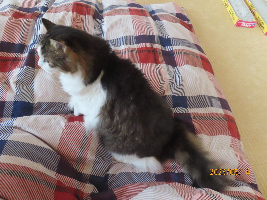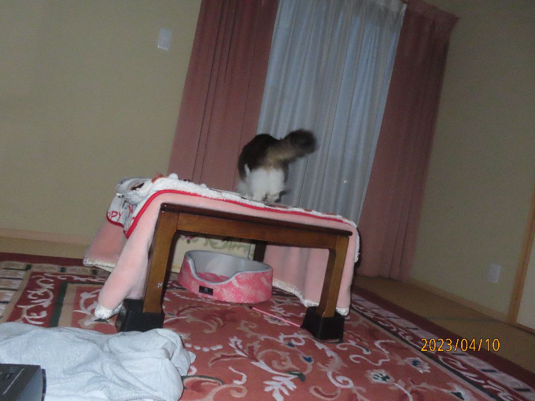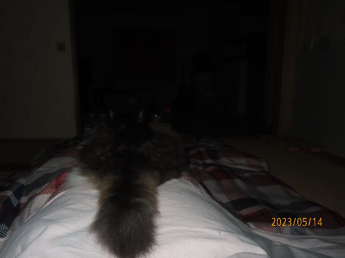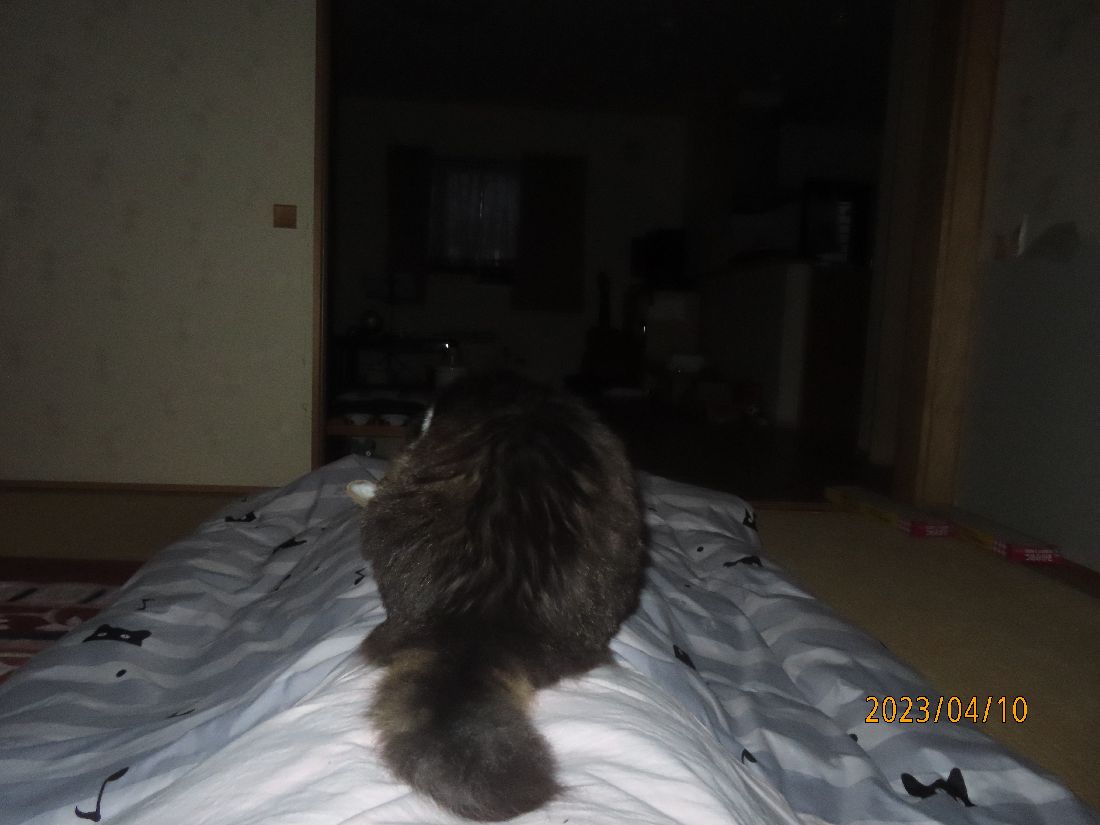 おやすみ挨拶の後、この日もキッチンベッドでおやすみになりました。