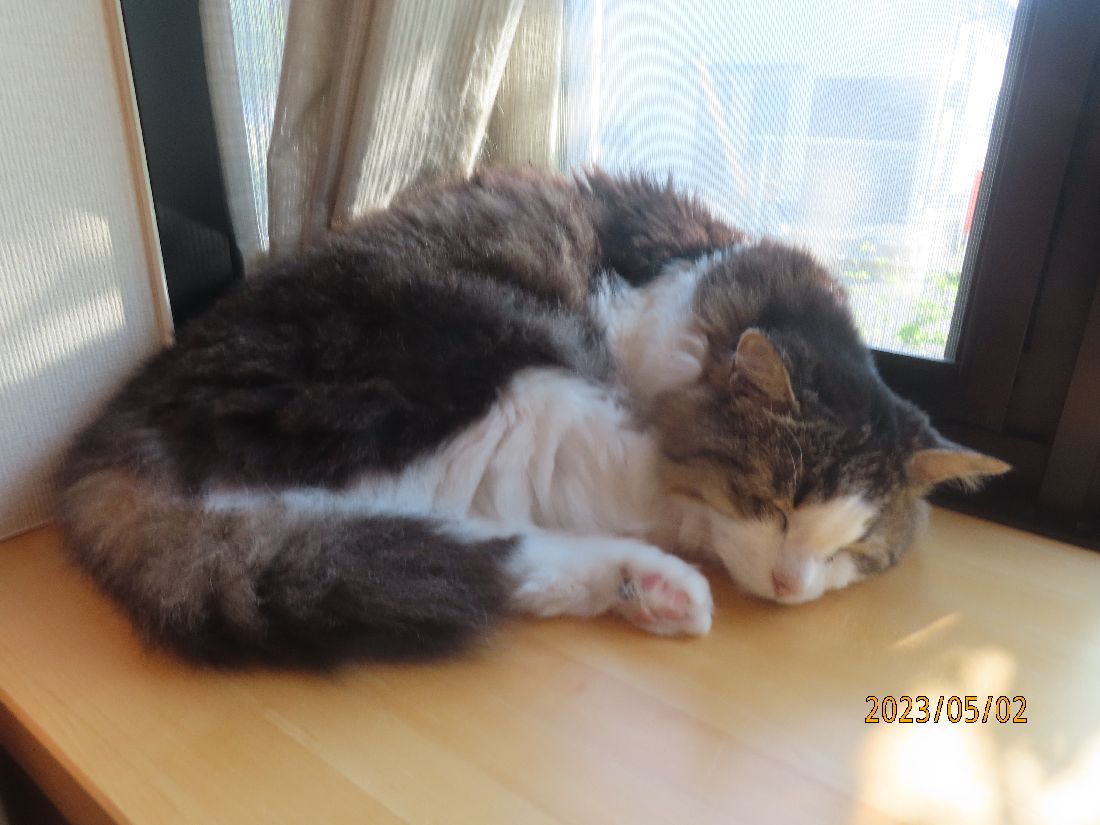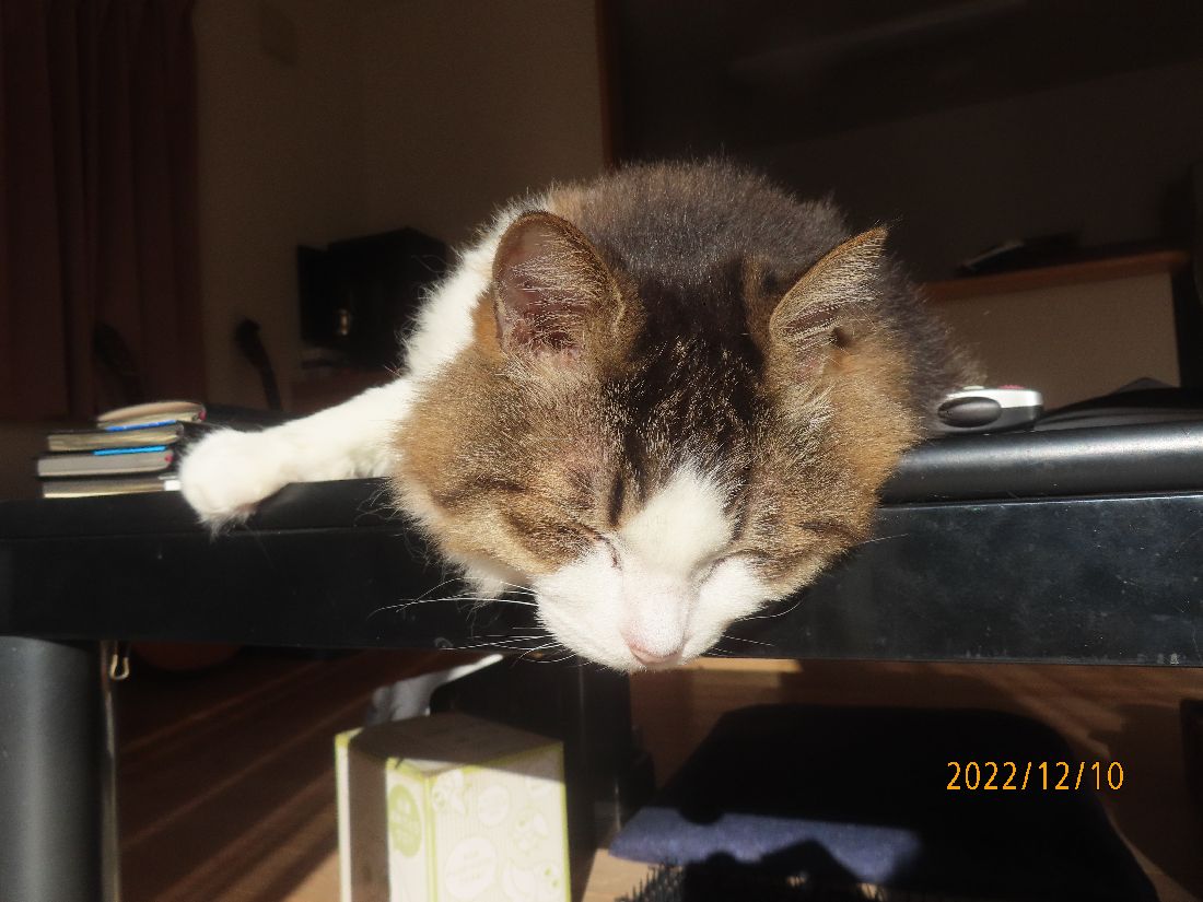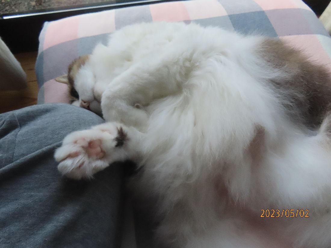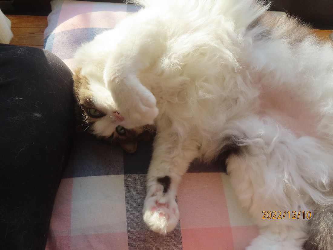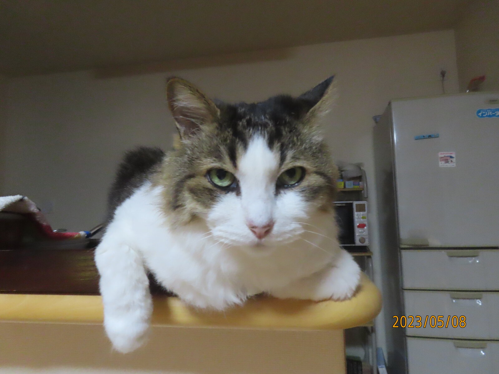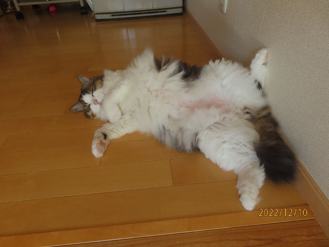 おやすみ挨拶の後、この日もキッチンベッドでおやすみになりました。
