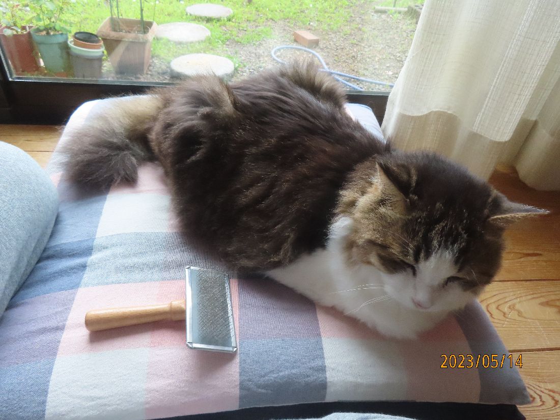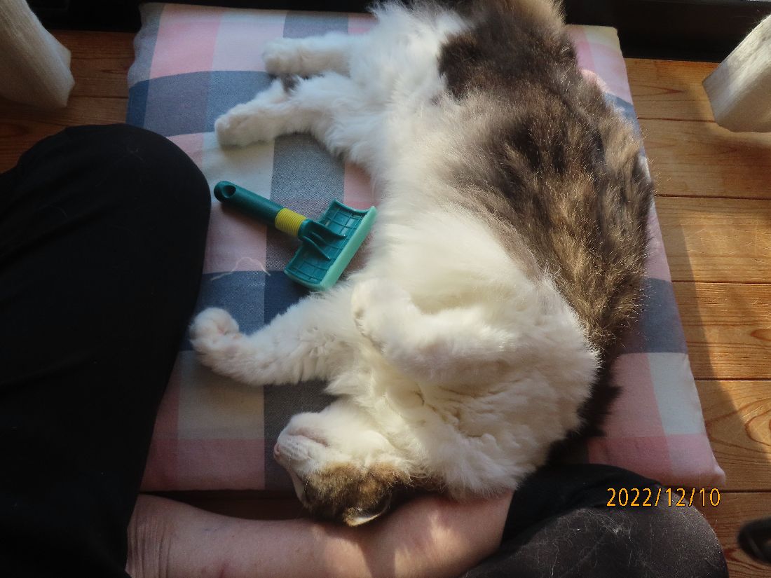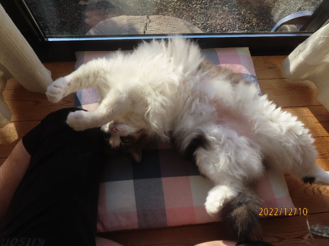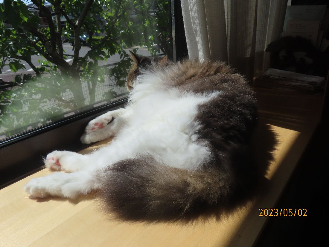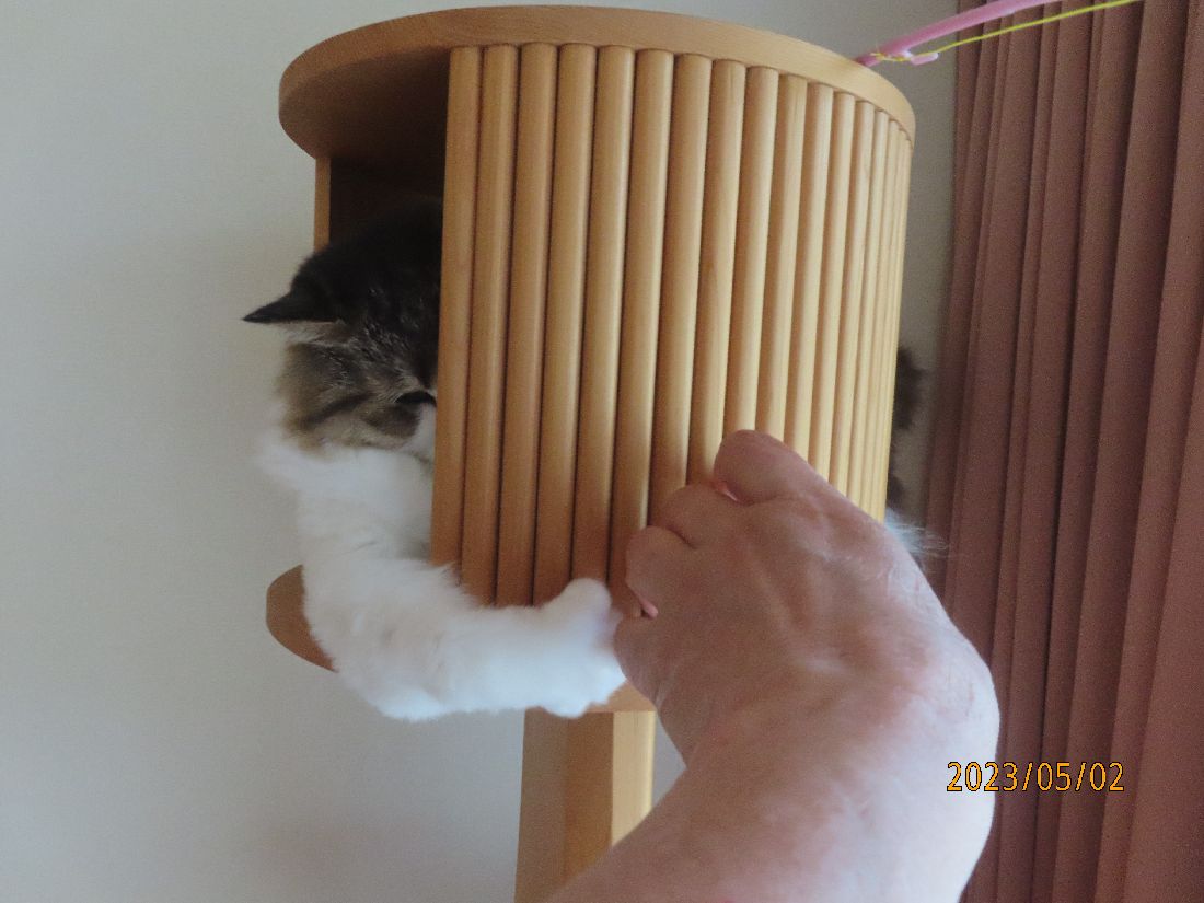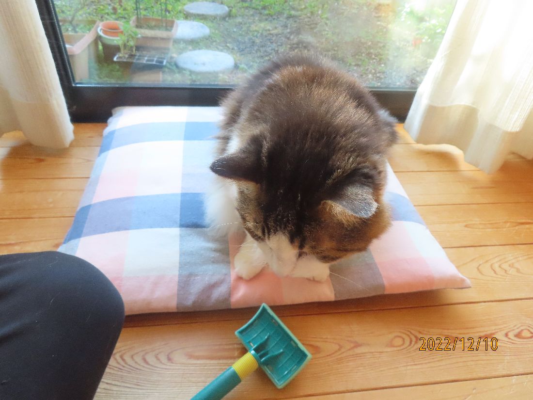 おやすみ挨拶の後、この日もキッチンベッドでおやすみになりました。