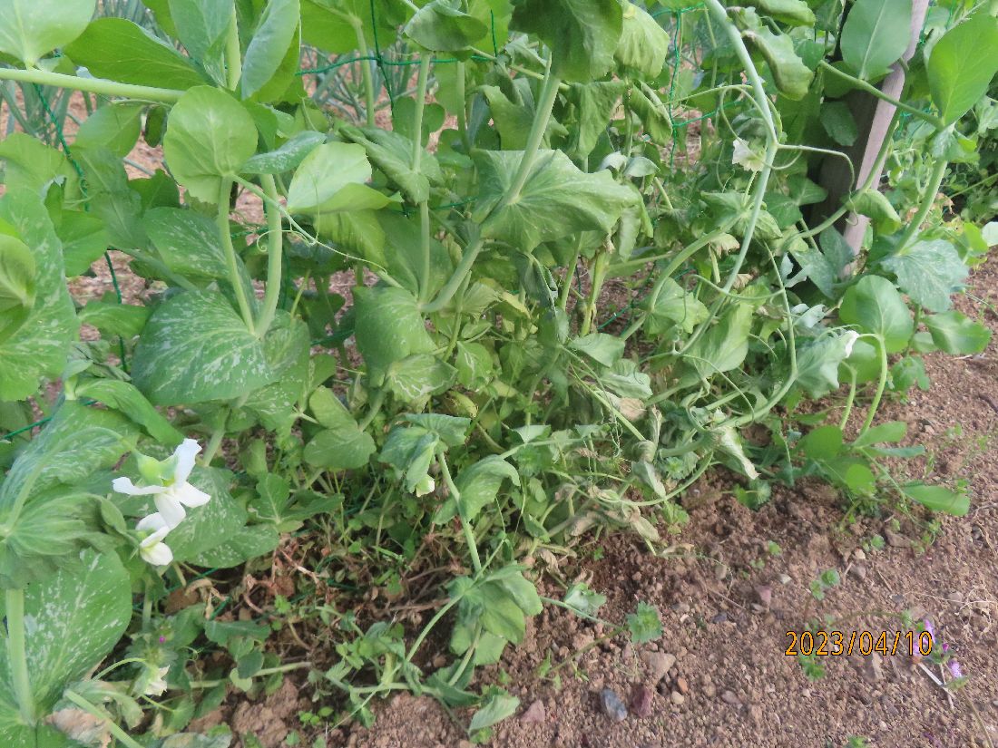 わっさわさに茂っていたエンドウが沈んできたようです。