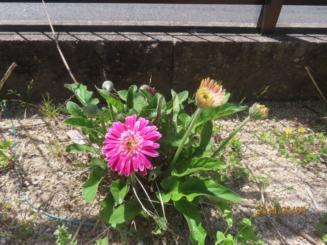 生き残ったガーベラが開花しました。